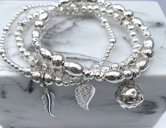 Sterling Silver Star/Moon Harmony Ball Bracelet