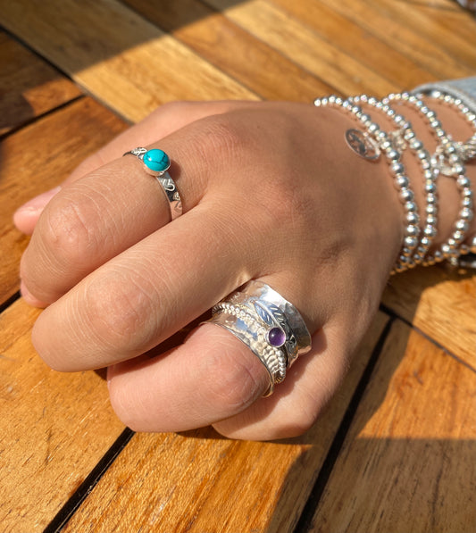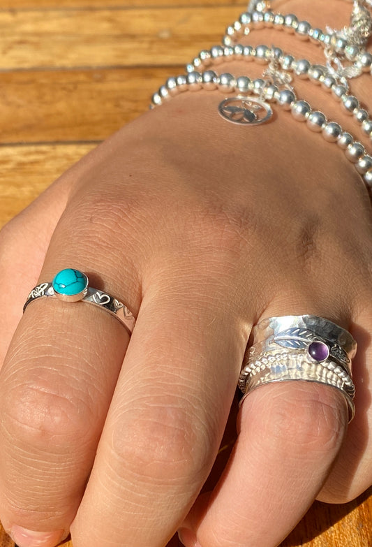 Turquoise stamped birthstone ring