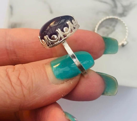 Large amethyst pear silver ring.