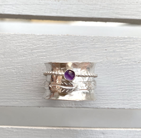 Handcrafted Sterling Silver Amethyst Leaves Spinner Ring