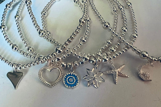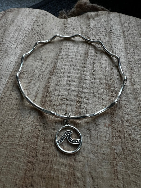 Aquamarine and Sterling Silver Anklet with Wave Charm