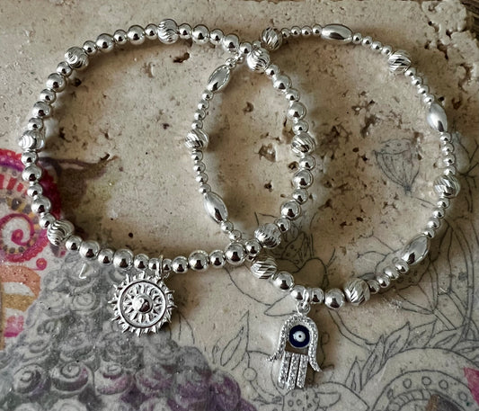 Sky blue Evil Eye and Enamel Mandala Anklet