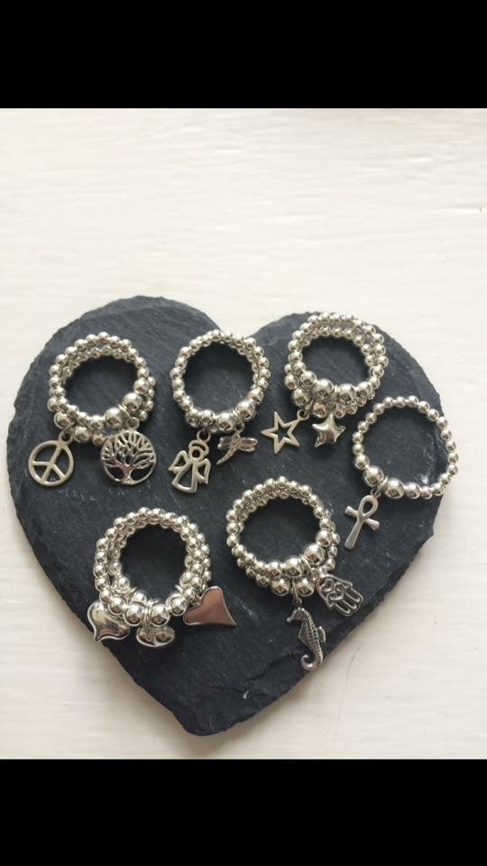 Sterling silver stacking charm rings available in 2 different sizes.