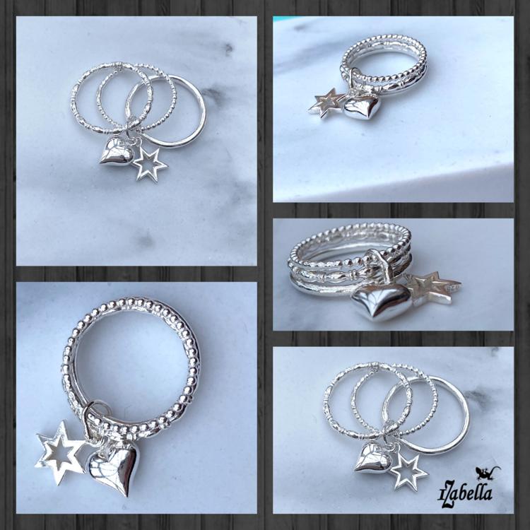 This beautiful ring features 3 solid bands measuring a total width of 6mm when sat on your finger. The bands are all different plain, beaded and oval and held together by a soldered ring featuring 2 charms with a choice of heart, star, birthstone, skull, tree of life, compass (if you would like a birthstone please state the Month in the comment box)